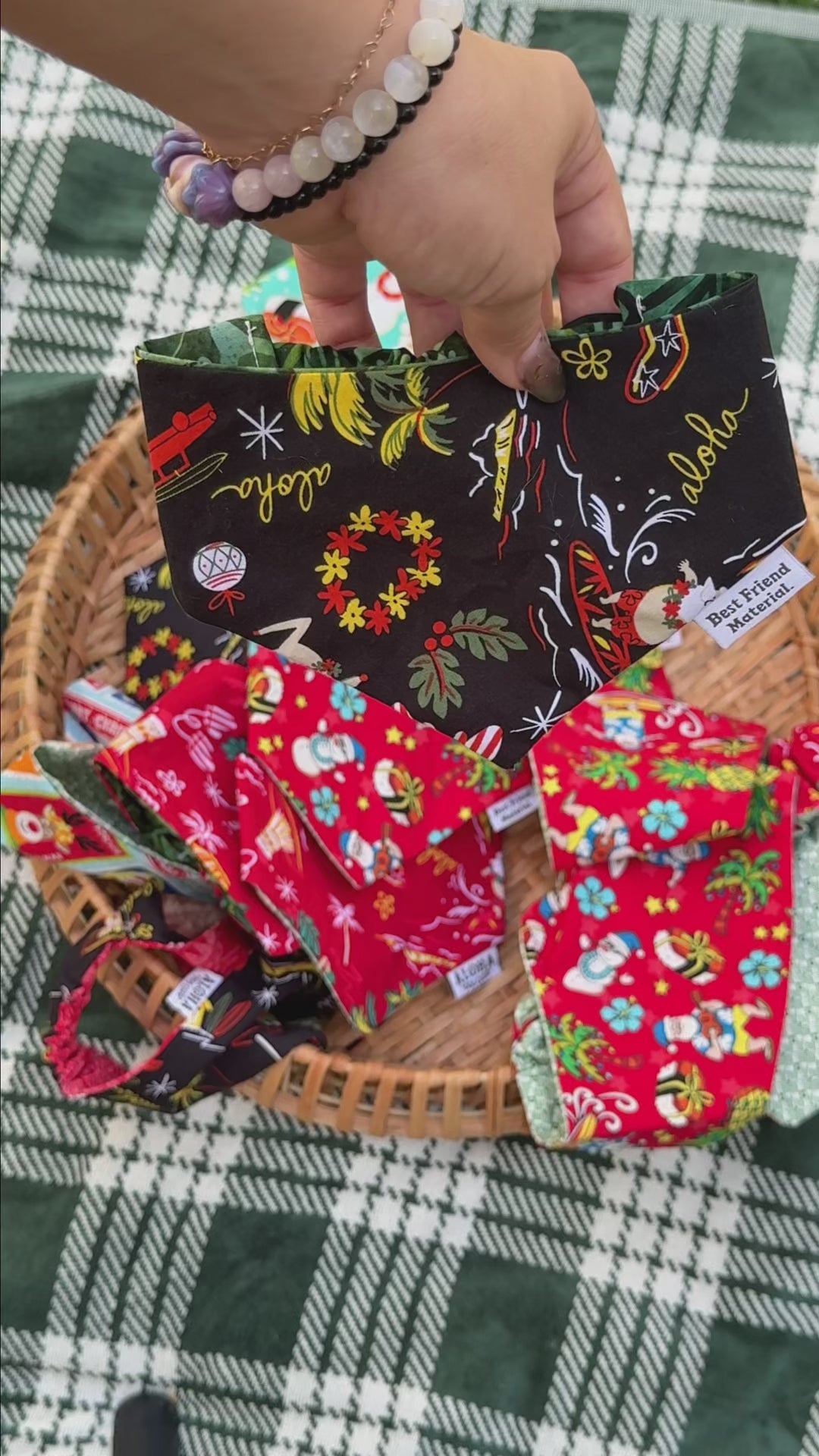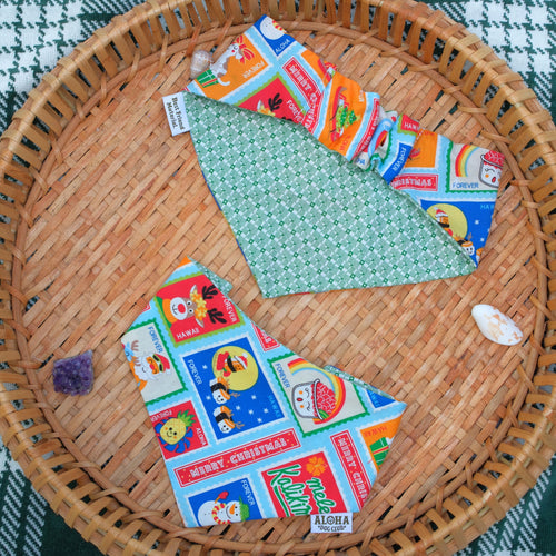 Bring a little island cheer to your pup’s wardrobe! Our Maui-made holiday bandanas are reversible, easy to slip on, and full of festive aloha.